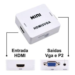 O HDMI para VGA é um conversor de vídeo HD que converte sinal HDMI para sinal analógico VGA . Ajudando usuários que desejam transformar o sinal HDMI em VGA, a utilização do aparelho é muito fácil. Basta plugar os cabos, ligar o cabo USB de alimentação e utilizar. -Vale ressaltar que o aparelho não converte o sinal de forma inversa, então ele apenas transforma o sinal HDMI em sinal VGA, não fazendo a função inversa. Características: · Não há necessidade de instalar drivers, portátil, flexível. · Baixo consumo de energia via USB. · sincronização de áudio com vídeo · capacidade de largura de banda de apoio @ 60Hz Especificações: · Porta de entrada: HDMI Fêmea · Porta de saída: VGA Fêmea e P2 3.5mm · Dimensões : 60 x 54 x 20 · Cor: branco Itens inclusos: - 1 x Conversor saida HDMI Para VGA - 1 x Cabo Usb 2.0 para alimentação