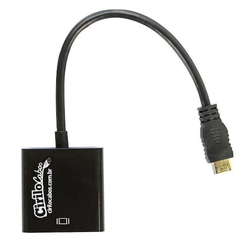Conversor Adaptador Mini Hdmi Para Vga Agora você pode ligar com facilidade aparelhos com saídas Mini HDMI como câmeras fotográficas, filmadoras, tabletes, entre outros, em televisores, monitores ou projetores VGA. Produto com qualidade e garantia de 3 meses pela Cirilo Cabos.