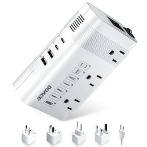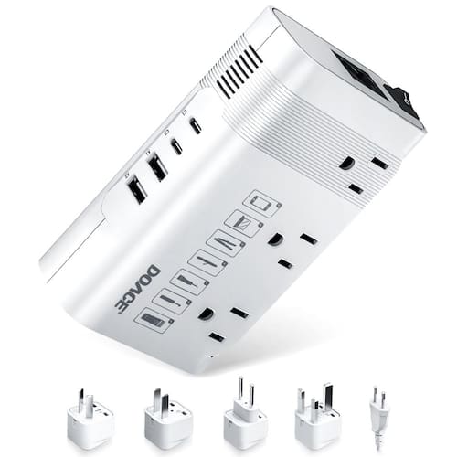 conversores de energia - [Conversor de tensão DOACE 220 a 110] Ele converte facilmente 100-240V, 50/60Hz para 110-120V, 60Hz, tornando-o perfeito para viagens. Com quatro adaptadores de plugue (UE/AU/EUA/UK) e um cabo de alimentação europeu, você pode usar seus dispositivos americanos em qualquer lugar. Além disso, as quatro portas USB simplificam o carregamento de seus itens essenciais. - [Conversor para viagens pela Europa] Ele vem com um cabo de alimentação da UE e quatro adaptadores internacionais (UE/AU/EUA/Reino Unido), funcionando com tomadas em mais de 160 países, incluindo Austrália, Itália, França, Alemanha, América do Norte, Reino Unido, Japão e China. O adaptador extra da UE facilita a conexão de dispositivos de dupla tensão (100-240 V) na Europa. - [Suporta modeladores e alisadores de cabelo] Ele pode lidar com dispositivos de até 350 W, incluindo sua máquina de CPAP, barbeador elétrico, laptop, bomba de mama, escova de dentes elétrica, ventilador, nebulizador, console de jogos, TV, DVD player e muito mais. - [Carregamento rápido 7-1] Carregue até sete dispositivos ao mesmo tempo com quatro portas USB (A1:5V 2.4A, C1:5V 3A) e três soquetes AC, oferecendo uma saída total de 350W. * Nota: a saída USB é completamente isolada da alimentação CA para proteger todos os seus dispositivos. - [Projeto de segurança] O conversor DOACE oferece proteção robusta contra subtensão, sobretensão, superaquecimento, sobrecarga, sobrecorrente e curto-circuitos. Se ocorrer uma sobrecarga, o interruptor será desligado para proteger seus dispositivos e piscará como um aviso. Ele será reiniciado automaticamente quando esfriar. - [Tiny Body For Travel] Ele possui um tamanho compacto (4,92 polegadas × 3,09 polegadas × 1,50 polegadas) e vem com um cabo de alimentação removível de 4 pés, junto com uma bolsa de viagem para facilitar a embalagem e portabilidade.