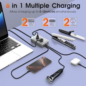 - ?Conversor de energia 6 em 1 para a Europa? O combo adaptador conversor de energia inclui 2 tomadas CA, 2 portas USB-A e 2 portas USB-C, pode carregar até 6 dispositivos por vez, permitindo que você carregue seus fones de ouvido Bluetooth, telefone, tablet, etc. Medindo 12,4 x 7,4 x 3,3 cm, o conversor de tensão portátil o torna perfeito para viagens curtas e longas