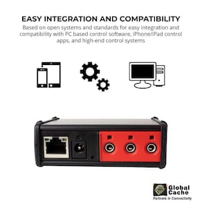 - Funciona com aplicativos de controle de PC, Android e iOS: o IP2IR tem um sistema de rede aberta, por isso se integra perfeitamente com software de controle baseado em PC, aplicativos para iPhone/iPod/iPad e sistemas de monitoramento de alta qualidade.