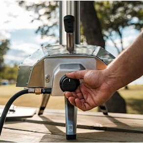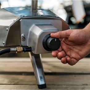 O queimador de gás para Ooni Karu 12 se conecta diretamente na parte traseira do forno, fornecendo uma opção conveniente e fácil de alimentá-lo com gás GLP.