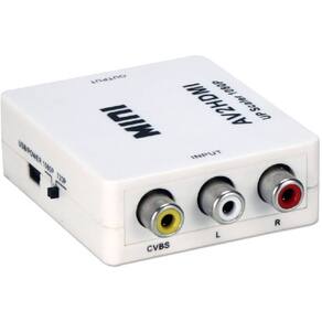 Converte áudio/vídeo composto em sinal HDMI de alto nível para 720p ou 1080p alimentado por porta HDMI ou USB, switch NTSC/PAL para uso internacional