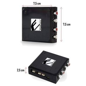Características: - Conversor de saídas Amplificadas p/ RCA - 4 canais de entradas | 4 canais de saídas - Para ser utilizado c/ CD Players, que não possuem conexão RCA - Possui um exclusivo sistema de Acionamento Automático p/ Amplificador - Após detectar o sinal na entrada de áudio, o FC 4 X gera comando remoto