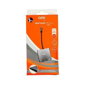 ADAPTADOR TYPE-C (3 EM 1): - Adaptador 3 em 1: Conexão Type C para HDMI, USB-C (PD), USB - HDMI suporta taxa de resolução de vídeo de até 3840x2160 p/30 hz - USB-C (PD) exclusivo para recarga: com voltagem de 20V/3A - USB 3.0: alta velocidade de transferência e fonte de energia de até 4.5W - Adaptador compatível com notebooks, desktops e outros dispositivos móveis com entrada Type C (3.0 / 3.1) - Dimensões: 17,8 x 11 x 7mm - Comprimento do cabo: 105mm
