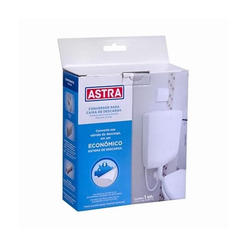 - Marca: Astra; - Pressão de trabalho: até 20 m.c.a; - Indicado para converter o sistema de válvula de descarga; - Adapta-se à caixa baixa da Astra e diversas louças com caixa acoplada; - Proporciona redução de até 50% no consumo de água na descarga; - A instalação é simples, não precisa de obra nem furação na parede; - Não exige troca da bacia sanitária, se instalado com as Caixas de Descarga Baixa da Astra; - Design discreto, adequa-se a qualquer tipo de decoração; - Acabamento compatível com as principais válvulas do mercado.