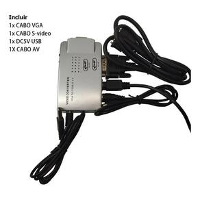 Este conversor possibilita que ligue aparelhos com saída de vídeo vga, como computador e notebook, a monitores, televisões, projetores e outros tipos de tela que tenham entrada de vídeo rca conexão amarela ou s-vídeo super vídeo .
