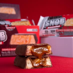 Descrição: Snob é a primeira barrinha de proteína assada ela é sem glúten, zero açúcar e com 9g de proteínas por barra.