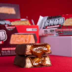 Descrição: Snob é a primeira barrinha de proteína assada ela é sem glúten, zero açúcar e com 9g de proteínas por barra.