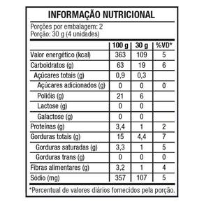 Fécula de mandioca, farinha de arroz, óleos vegetais soja, milho e algodão , fécula de batata, gotas de cobertura sabor chocolate sem lactose, fibra de soja não transgênica, cacau em pó, farinha de soja não transgênica, sal, edulcorantes xarope de maltitol e sucralose, emulsificantes lecitina de soja,estearoil lactato de sódio e mono e diglicerídeos de ácidos graxos, fermentos químicos bicarbonato de sódio, bicarbonato de amônio, pirofosfato ácido de sódio e fosfato monocálcico, espessante goma xantana, acidulante ácido cítrico e aromas.
