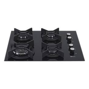 Cooktop de embutir com mesa em vidro temperado na cor preta, trempes individuais em ferro fundido esmaltado e 4 queimadores com tecnologia italiana.Luz de calor residual