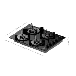 Mesa de vidro temperado, grades de ferro fundido com quatro apoios, tecnologia ChamaPrecisa com 6 níveis de ajuste.Luz de calor residual