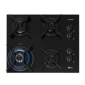 Tripla Chama, Acendimento superautomático, Mesa de vidro temperado, Botões ergonômicos, Câmara de gás fechada, Trempes IronLuz de calor residual