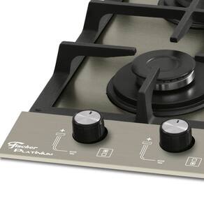 O Fogão Cooktop Fischer Platinium apresenta um design moderno e a praticidade de 4 queimadores: 2 rápidos de 3000W e 2 semirrápidos de 1750W. O acendimento é automático e o item pode ser utilizado com gás GLP ou GN. Você pode adquirir o produto com a mesa em vidro ou prime (liga metálica especial).Características do produto:Marca: FischerModelo: PlatiniumTipo: A gásBocas: 04Mesa: Prime escovadoQueimadores: 2 semi-rápidos e 2 rápidosPotência dos queimadores: Rápido: 3000 watts; Semi-rápido: 1750 WattsMaterial dos queimadores: SabafTrempes: Duplas de ferro fundidoAcendimento: Super automáticoTipo de gás: GLP (conversível para GN)Pressão do gás: GLP ( 2,75 kPa) e GN ( 2,00 kPa)Controle: EletromecânicoTrava de acionamento: SimPotência máxima: 18,5 WattsClassificação Energética: BFrequência: 50-60 HzConteúdo da embalagem: Cooktop, 4 fitas adesivas, rede de postos autorizados, manual de instruçõesCertificado pelo Inmetro: Portaria 400Dimensões do nicho: Largura do nicho: 55,50 cmProfundidade do nicho: 48,50 cmDimensões do produto montado:Altura: 13 cmLargura: 59 cmProfundidade: 52,2 cmPeso: 12,45 kgGarantia do fornecedor: 12 meses O produto sai de fábrica regulado para funcionar com Gás Liquefeito de Petróleo (GLP).