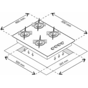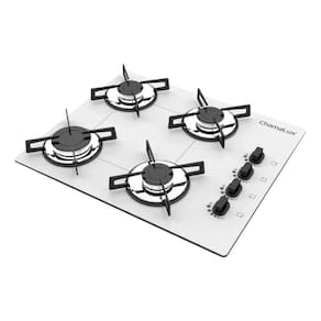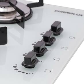 Cooktop a gás Chamalux 4 bocas com mesa em vidro temperado, acendimento superautomático, trempes individuais esmaltadas e queimador ultra rápido.Luz de calor residual