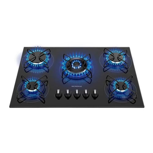 O Cooktop a Gás 5 Bocas Tripla Chama CTG-03 garante mais potência e rapidez no preparo dos alimentos. Possui mesa de vidro temperado, com melhor disposição e aproveitamento entre as bocas e 5 queimadores com potência total de 11.050W, sendo 1 queimador Tripla Chama. Os botões são removíveis, têm detalhamento em aço inox, e o acendimento das chamas é automático. Acendimento Automático: Agilidade e segurança para o dia a dia. Basta girar o botão que a chama acende. Controle entre as Chamas: Registros com sistema By Pass que permitem melhor regulagem de chamas altas e baixas. Mesa de Vidro Temperado: Garante elegância ao ambiente, alta durabilidade e praticidade na limpeza. Design Moderno: Botões com detalhes em aço inox. Saiba mais sobre o CTG-03 da Mondial: