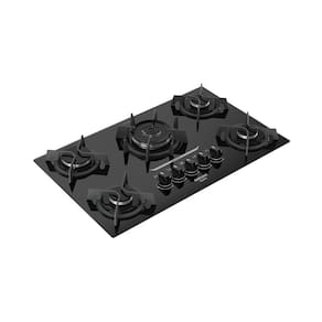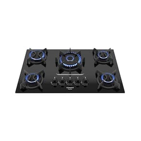 5 queimadores | Queimador Tripla Chama | Trempes em ferro fundido | Mesa em vidro temperado | Acendimento superautomático | Controle integrado na mesaLuz de calor residual