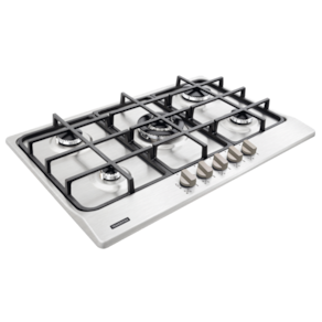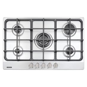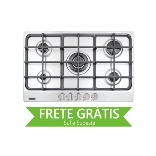 Cooktop a Gás Tramontina New Penta 5GX TRI HE Safestop 75 em Aço Inox com 5 queimadores, sendo um com chama tripla, trempes em ferro fundido, acendimento super automático e válvula de segurança Safestop.Alimentação