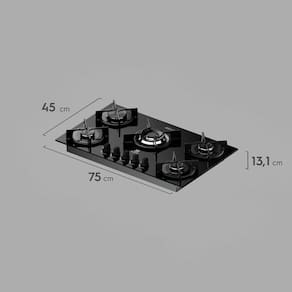 O Cooktop Electrolux a Gas e a escolha ideal para quem busca eficiencia e sofisticacao na cozinha. Com um design moderno em vidro preto, este modelo da linha Experience combina elegancia e funcionalidade, tornando-se o centro das atencoes em qualquer ambiente. Suas dimensoes de 75x45 cm e peso de 12 kg garantem uma presenca marcante e robusta, enquanto a instalacao e facilitada pelas medidas do nicho, com largura de 66 cm e profundidade de 39 cm. Equipado com cinco bocas, o cooktop oferece versatilidade para diferentes necessidades culinarias. Sao tres bocas pequenas, uma media e uma grande, todas com a tecnologia de chama Quadri, que proporciona uma distribuicao uniforme do calor para um cozimento preciso. O acendimento automatico e um beneficio adicional, garantindo praticidade e seguranca ao evitar o uso de fosforos ou isqueiros. A potencia maxima de 12000 W assegura um desempenho eficiente, ideal para preparar desde refeicoes rapidas ate pratos mais elaborados. Apesar de nao possuir timer, a confiabilidade e a garantia de 12 meses do fabricante oferecem tranquilidade para o uso diario. Este cooktop nao e portatil, mas sua instalacao fixa garante estabilidade e seguranca durante o uso. E a escolha perfeita para cozinhas modernas que valorizam tanto a estetica quanto a performance. Resumo das caracteristicas: Produto: Cooktop Marca: Electrolux Alimentacao: a Gas Tensao Eletrica: Bivolt Portatil: Nao Altura: 13,10 cm Largura: 75,00 cm Profundidade: 45,00 cm Dimensao: 75x45 cm Largura do Nicho para Cooktop: 66 Profundidade do Nicho para Cooktop: 39 Peso do Produto: 12,00 Kg Material: Vidro Tonalidade: Preto Quantidade de Bocas: 5 boca(s) Quantidade de Bocas Pequenas: 3 boca(s) Quantidade de Bocas Medias: 1 boca(s) Quantidade de Bocas Grandes: 1 boca(s) Chama: Quadri Acendedor: Automatico Timer: Sem Timer Potencia Maxima: 12000 W Potencia Minima: 12000 W Linha: Experience Referencia do Produto: KE5GC Garantia do Fabricante: 12 mes(es)