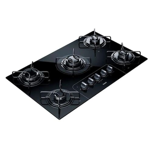 Cooktop 5 bocas Consul Controle Fácil Acendimento Auto BivoltSe você quer incrementar a sua cozinha ou criar um espaço gourmet na sua casa, pode começar por aqui!O Cooktop Consul 5 bocas de vidro temperado preto, possui Acendimento Super Automatico e conta com o exclusivo botao "Controle Facil", que traz dicas de uso para diferentes tipos de preparo. E tem mais: para garantir mais flexibilidade na cozinha, seus queimadores possuem potências diferentes - sendo 2 queimadores rapidos com potência de 3000W e 3 queimadores semi-rapidos com potência de 1800W - para que possam ser utilizados diversos tamanhos de panela. Sempre fica na duvida de qual a temperatura usar para cada tipo de cozimento? A Consul pensou em um jeito de te ajudar! O Botao Controle Facil indica qual a posiçao correta para: ferver, fritas, cozinha, refogar e preparar molhos. No botao "Controle Facil", você encontra dicas de uso das potências para cada tipo de preparo. Exemplo: posiçao "ferver": Esta funçao e a de maior potência e e indicada para ferver agua/leite com maior rapidez e eficiência. Girou, ligou! Com o acendimento superautomatico do Cooktop Consul, basta pressionar e girar o botao que a chama se acende. Simples assim! Os discos dos queimadores sao esmaltados, ou seja, mais resistentes do que discos de apoio em aço inox. As grades de apoio para panelas, sao individuais, resistentes e com angulaçao, dando mais estabilidade para as panelas. Cada boca do cooktop a gas tem o tamanho ideal para cada tipo de panela. Com a legenda P, M, G em cada queimador, fica facil saber qual usar. CARACTERÍSTICAS: - Botão Controle Fácil. - Grades individuais e Disco do queimador esmaltados. - Acendimento Superautomático. - Nicho de embutir. DADOS TÉCNICOS: - Tensão: Bivolt - Tipo: À gás - Modelo de Embutir: Sim - Potência dos queimadores kW : 3 semi-rápidos = 1,8 kW / 2 rápidos = 3 kW - Relógio: Não - Timer: Não - Acendimento: Super automático - Trava de segurança: Não - Queimador rápido: Sim - Material da mesa: Vidro Temperado Preto - Tipo de gás: GLP / GN - Medidas AxLxP : 8,6x73x46 cm - Peso: 10 Kg - Garantia: 12 meses ACESSÓRIOS - Manual de instruções