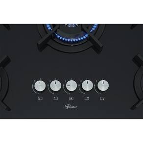 Cooktop 5 Bocas Fischer Infinity Trempe De Ferro Tripla Chama à Gás Mesa De Vidro Preto Bivolt