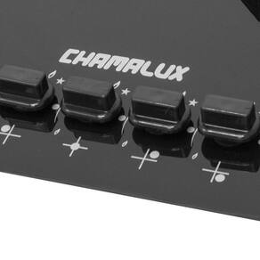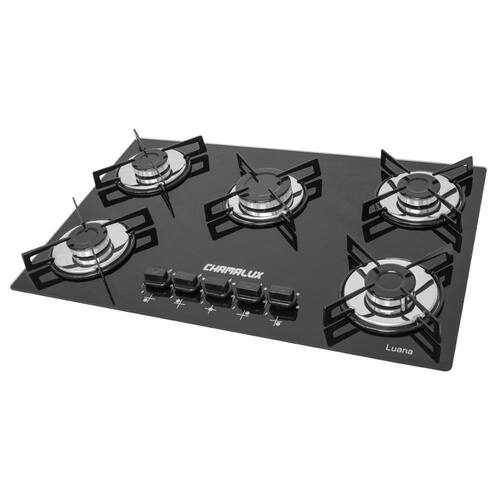 Dados Técnicos: - Tensão: Bivolt - Material da trempe: Esmaltada - Classificação A - Quantidade de Queimadores: 05 - Marca: Chamalux - Acendimento Inteligente (Acende ao girar o botão) - Mesa: Vidro temperado - Espessura do vidro: 6 mm - Cor: Preto - Medidas (AxLxP): 10x46x68 cm - Peso: 9,5 Kg - Garantia: 12 meses