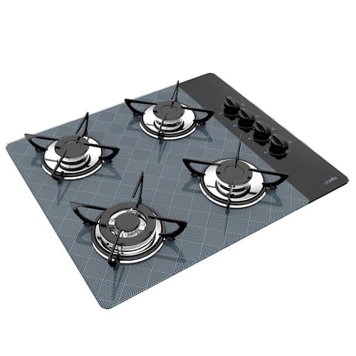 <strong>Acendimento Superautomático</strong> Acende, em qualquer posição, ao girar o botão. Caso a chama apague, os botões deste cooktop acendem de qualquer posição, sem a necessidade de retornar à posição original. <strong>Mesa de vidro temperado</strong> Beleza, praticidade e segurança no manuseio. <strong>Queimador Chama Tripla</strong> Queimador de maior potência para um cozimento super-rápido. <strong>Trempes esmaltadas com exclusivo sistema de encaixe</strong> Mais segurança; evita o deslocamento durante o manuseio. <strong>Queimadores esmaltados com design funcional</strong> Maior rendimento, beleza e muito resistentes.Alimentação
