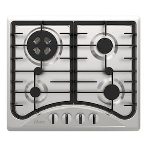Cooktop a gás Oster com 4 bocas, acendimento automático, construído em aço inoxidável, grades de ferro fundido e funcionalidade bivolt.Luz de calor residual