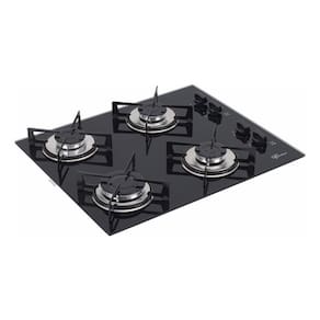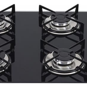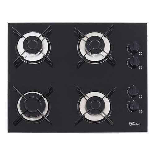 Cooktop Fischer a gás com 4 bocas, acendimento automático, acabamento em vidro preto e trempes em aço esmaltado. Bivolt.Alimentação