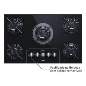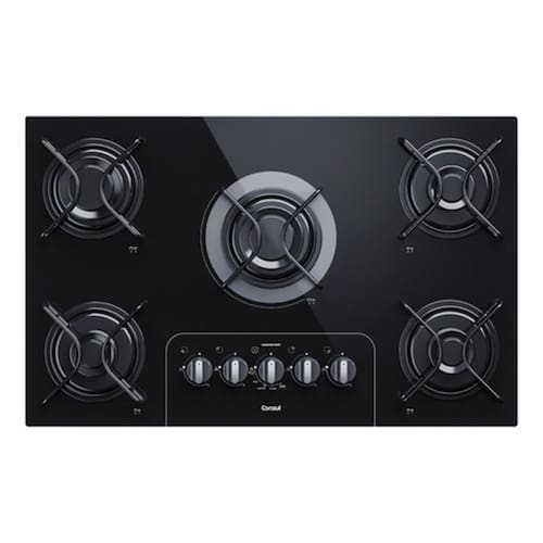 Cooktop Consul a gás com 5 bocas, design moderno, acendimento automático e materiais de alta qualidade (aço e vidro preto).Luz de calor residual