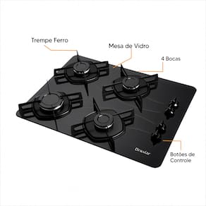 O design elegante em vidro preto traz um toque de modernidade e facilita a limpeza, além de oferecer durabilidade e resistência. Com 4 queimadores potentes que permitem o preparo de diversas receitas ao mesmo tempo, você terá toda a agilidade e potência que super automático facilita o acendimento: basta girar o botão para que a chamada se acenda automaticamente, oferecendo mais praticidade e segurança.