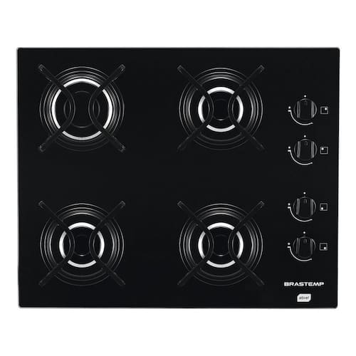 O acabamento dos detalhes é outro destaque, com queimadores em alumínio e trempes de ferro esmaltado.Cooktop Ative! é assiiim, um produto de qualidade que só a Brastemp tem.* Design exclusivo em vidro preto* Trempes de ferro esmaltado e queimadores em alumínio* Acendimento super automático: Basta girar o botão e o cooktop acendeTipo do produtoCooktopQueimadores4 queimadoresTipoÀ gásCorPretoPotência dos queimadores (w)3Garantia do Fornecedor (mês)12Informações para InstalaçãoPrefira sempre os serviços da Rede de Assistência Técnica Brastemp para realizar desde a instalação até a manutenção de seus produtos com tranquilidade e segurança.Se optar por não utilizar a rede de serviços Brastemp para realizar o serviço, siga as especificações descritas no manual de instruções.Antes de chamar o técnico, certifique-se de que todo o trabalho de pré-instalação necessário, como as dimensões do nicho de instalação, preparação do produto e instalação elétrica, estão de acordo com o especificado no manual do produto.Os revestimentos das paredes dos móveis ou aparelhos adjacentes ao cooktop devem ser resistentes ao calor.Verifique se a sua residência possui uma tomada exclusiva e em perfeito estado, com o novo padrão de plugue, segundo o INMETRO, para conectar o plugue do seu fogão. Instale o cooktop de forma que o plugue esteja acessível após a instalação.Se uma coifa for instalada sobre o cooktop, leia as instruções da coifa e observe as distâncias recomendadas para instalação, respeitando sempre as distâncias mínimas, indicadas no manual.O ponto de conexão do botijão de gás ou do gás canalizado de sua residência deve estar localizado no máximo a 1 m do centro de seu cooktop, em local de fácil acesso para permitir a conexão e inspeção. A mangueira não pode ser estrangulada ou dobrada.Em casos de gás canalizado, você deve possuir registro de parede exclusivo para seu cooktop, localizado em local de fácil acesso e estar em boas condições.O produto sai de fábrica ajustado para uso com gás GLP. Verifique se o tipo e pressão de gás, disponíveis na sua residência, estão de acordo com o especificado na etiqueta de identificação do produto.O produto sai de fábrica ajustado para uso com gás GLP. Para uso com GN (gás natural), você pode chamar a Rede de Serviços Brastemp para fazer a conversão do fogão para o novo tipo de gás antes proceder a instalação. A primeira conversão é gratuita, dentro do período especificado no manual, contado a partir da data da Nota Fiscal.Material da mesaVidroDimensões (LxAxP) (cm)56.50 x 8.60 x 46.00Peso (kg)8.00Características Gerais : Voltagem: Bivolt Marca: Brastemp