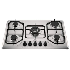 Cooktop a gás Electrolux 5 bocas com queimador Multi Chama, grades de ferro fundido, Tecnologia ChamaPrecisa com 6 níveis de potência, acendimento superautomático e mesa de aço inox escovado.Luz de calor residual