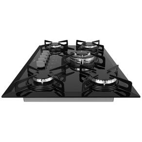 Com 5 queimadores, sendo 1 tripla chama (3300W), 2 rápidos (3000W) e 2 semirrápidos (1750W), você poderá preparar as suas receitas favoritas com muito mais facilidade. Possui acendimento automático (snap in) para a praticidade na utilização. Tem tampa em vidro temperado com 8mm de espessura e trempes esmaltadas, oferecendo muito mais resistência e facilidade na hora de limpar. Para evitar o escoamento de líquidos para a parte interna do produto, possui vedação. Produto a gás, com pressão de 2,8 kPa para GLP e 2,00 kPa para GN.