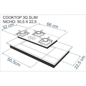 Cooktop a Gás 3 Queimadores. 1 rápido 3000W e 2 semirrápido 1750W. Bivolt. Acendimento elétrico Snap In. Botões ergonômicos e removíveis para limpeza. Vidro temperado preto 6mm. Suportes redondos "Non Stick" antiaderentes. Trempes grandes de aço esmaltado, maior estabilidade as panelas e mais segurança no uso. Design diferenciado, e sempre uma opção inteligente para ambientes modernos. Enviado para GLP, a conversão para GN deve ser feita pelo Serviço Autorizado. Garantia 12 meses.