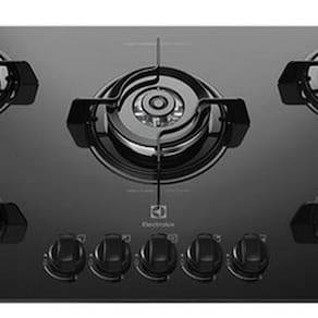 Cooktop a gás Electrolux com 5 bocas, tripla chama, acendimento automático e acabamento em vidro preto. Bivolt.Luz de calor residual