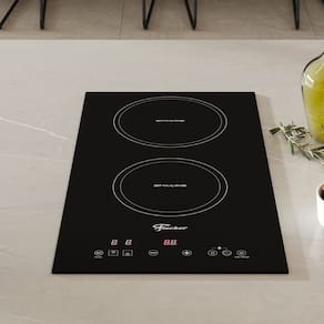 2 Bocas\nMesa vitrocerâmica\nPainel full touch\n9 Níveis de potência\nTimer até 99 minutos\nTrava de segurança\nDimensões do nicho de instalação -LxP-: 26,8 x 50 cmLuz de calor residual