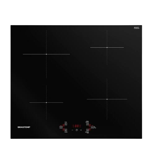 Cooktop de Inducao Brastemp 4 Bocas BDJ60BE, oferece um novo design moderno e recursos que facilitam o dia a dia na cozinha. Conta com deteccao automatica de panelas, trava de seguranca e um Timer inteligente, que desliga o cooktop automaticamente apos o preparo. Com 9 niveis de potencia e a funcao Powerbooster, garantindo funcionalidade, precisao e alto desempenho em cada refeicao.Luz de calor residual