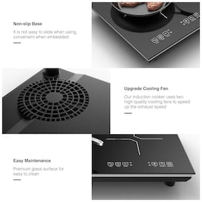 Fogão de Indução Seguro: O cooktop de indução de 2 queimadores está equipado com um bloqueio de segurança para crianças, temporizador e dispositivo de proteção contra superaquecimento, além de bordas arredondadas sem cantos afiados. Configure o temporizador de 1 a 180 minutos. O uso de dois ventiladores de resfriamento de baixo ruído atualizados pode melhorar significativamente o efeito de dissipação de calor. Seguro e fácil de usar.