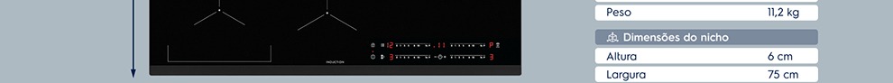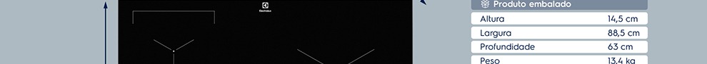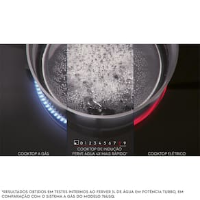 TIMER INDIVIDUAL POR ZONA: Mais controle no processo de cocção, atingindo melhores resultados. UNICOOK: Unifica 2 zonas de cocção permitindo usar diferentes técnicas e acessórios, como prancha grill. POWERBOOST: Potência máxima para atingir resultados em menor tempo. MESA DE VIDRO: Superfície plana e sem detalhes, facilitando a limpeza e estabilidade das panelas. TRAVA DE SEGURANÇA: Garantia de que produto não será acionado ou alterado indevidamente. SENSOR DE CALOR RESIDUAL: Segurança para evitar queimaduras quando a superfície do produto ainda estiver quente. FUNÇÃO PAUSA: Essa função diminui a zona à mínima potência, assim você pode atender outras emergências em sua casa sem o risco de passar do ponto ou queimar a sua receita. PAINEL TOUCH: Modernidade, facilidade nos controles e na limpeza. 14 NÍVEIS DE POTÊNCIA: Cozinhe as mais variadas receitas com maior precisão.Alimentação