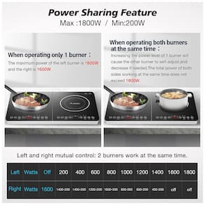Design de Aquecimento com Duas Zonas: O cooktop de indução profissional Aobosi é equipado com 2 zonas de aquecimento independentes, permitindo que você ajuste cada uma separadamente usando a tela LCD. A potência máxima do queimador esquerdo é de 1800 watts, e a potência máxima do queimador direito é de 1600 watts. Este fogão duplo pode economizar muito tempo e energia. 10 Níveis de Temperatura Disponíveis: Com a tela sensível ao toque, você pode ajustar a temperatura da placa de indução entre 60°C e 240°C. Também é possível configurar um temporizador de 4 horas para desligar automaticamente ao final do cozimento. Pressione o botão "Função", os botões Máx e Mín estão disponíveis para ajuste de potência e temperatura. Muito fácil de operar. Compatível com Utensílios Magnéticos: O queimador de indução Aobosi é compatível com aço inoxidável, ferro esmaltado ou ferro fundido (12-26 cm) que tenha fundo magnético. A cerâmica preta fosca garante fácil limpeza e resistência a riscos. O fogão desligará automaticamente se não houver utensílios em 1 minuto. Pressione longamente "+" e "-" ao mesmo tempo para travar. Múltiplas Seguranças e Manter Aquecido: A placa de indução dupla Aobosi possui proteção contra superaquecimento, sobrepressão e sobrecorrente. Diferente de outras marcas no mercado, além de converter entre temperatura e potência pressionando o botão "Função", nosso cooktop também possui uma função especial de manter aquecido. Pode manter sua água ou sopa a 80°C. Transforme sua cozinha com o Cooktop de Indução Duplo Aobosi e desfrute de uma experiência culinária eficiente e moderna!