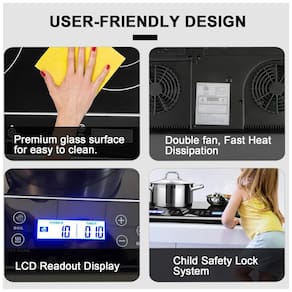 Cooktop de Indução Duplo Portátil Duxtop com display LCD, 110V, 1800W, controles touch, sistema de trava de segurança, eficiente em energia e compatível com utensílios de fundo magnético.Alimentação