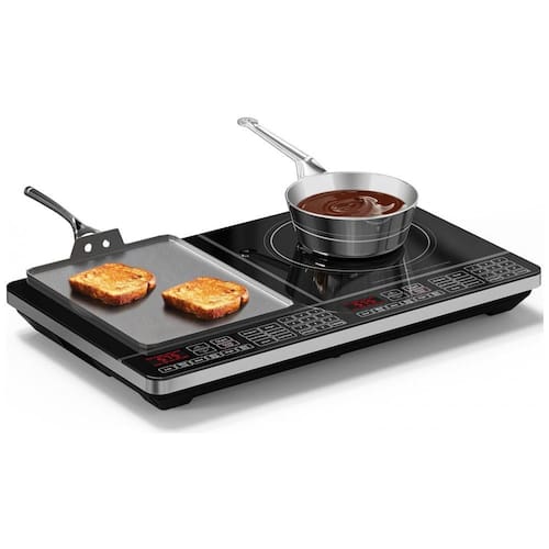 Controles Independentes: Com dois painéis de controle, ajuste as configurações de cada lado de forma independente. Com grandes bobinas de aquecimento de 20 cm e capacidade de peso de 11,3 kg por lado, você pode ferver macarrão de um lado e cozinhar molhos do outro.