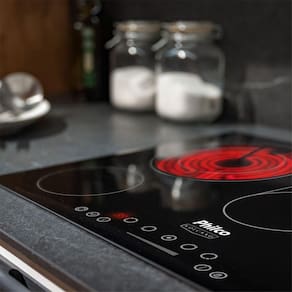 Cooktop Elétrico Philco Volcano com 5 queimadores, 8400W, 9 níveis de potência, timer de até 99 minutos, trava de segurança, sistema de proteção contra derramamento, base em vidro cerâmico.Alimentação