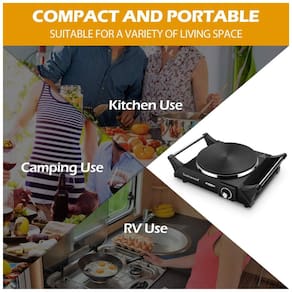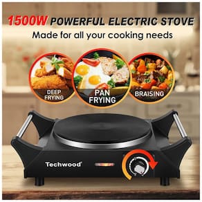 Cooktop elétrico portátil Techwood com 1 boca, ideal para espaços compactos, compatível com diversos utensílios, potência de 1500W e design em aço inoxidável.Alimentação
