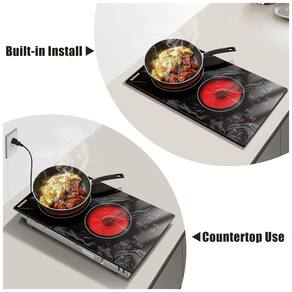 A superfície com Padrão de Ondas Belíssimo deste cooktop elétrico de 2 bocas da Karinear certamente irá te encantar. Esta é a versão aprimorada do fogão elétrico Karinean, com um padrão de ondas no vidro que o torna ainda mais elegante. Adquira este cooktop elétrico de 30 cm com padrão de ondas e deixe sua cozinha mais especial e menos monótona. As bocas não permanecem vermelhas o tempo todo, elas ciclam para ficar vermelhas. Cooktop Elétrico de 110-120V com Plugue de Tomada. Este cooktop elétrico com plugue é adequado para 110-120V, basta conectá-lo à tomada de sua casa e estará pronto para cozinhar, sem a necessidade de um eletricista para fazer a instalação. A potência do cooktop elétrico de 2 bocas é de 1400W e 600W. As bocas grandes possuem 19 níveis de calor ajustáveis, enquanto a boca pequena tem duas opções: "L" para baixo e "HI" para alto. A boca pequena é ideal para aquecer café e leite ou manter os alimentos aquecidos. Uso no Balcão ou Instalação Embutida. Preocupado em como instalar este cooktop elétrico de 30 cm? Não se preocupe, este é um cooktop elétrico portátil, com suporte na parte inferior, podendo ser utilizado diretamente sobre o balcão. Claro, se você tiver um recorte do tamanho certo em sua cozinha, pode instalá-lo embutido. O cooktop elétrico embutido economiza espaço e proporciona um visual mais bonito e sofisticado. Cooktop Multifuncional e Seguro. Se você procura um cooktop elétrico de 2 bocas multifuncional, nosso modelo atende perfeitamente às suas necessidades. Equipado com diversas funcionalidades como timer de 99 minutos, desligamento automático, trava de segurança infantil, função pausa, aviso de alta temperatura e proteção contra superaquecimento. Pode ser utilizado com panelas de ferro, aço inoxidável, cerâmica, vidro, cobre, entre outros. Cooktop de Vidro, Fácil de Limpar. A superfície deste cooktop elétrico de vidro é lisa e fácil de limpar, basta passar um pano úmido. A Karinear inclui uma espátula de limpeza de presente para ajudar na limpeza. Certifique-se de esperar o aviso de alta temperatura desaparecer antes de limpar, para evitar queimaduras. com nossos vendedores se tiver alguma dúvida sobre o produto.