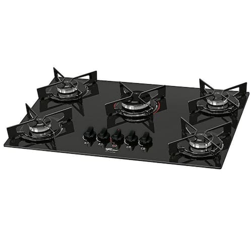 Cooktop Fischer 5 Bocas A Gás Mesa De Vidro Fit Line Preto