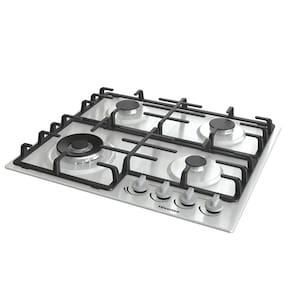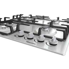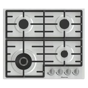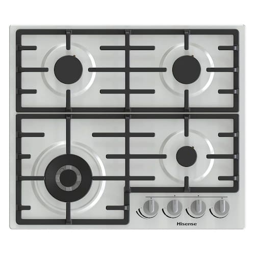 Cooktop Hisense 4 Bocas Inox com queimador Wok, suportes em ferro fundido e sistema de segurança Gás Stop.Luz de calor residual