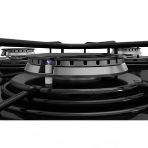 Potência e Praticidade: Serigrafia indicando maior potência dos queimadores.