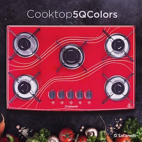 O Cooktop Safenelli vem com 5 queimadores, trempes individuais com borracha, é de fácil instalação, com angulação e encaixe perfeito na mesa, garantindo maior estabilidade das panelas sobre o produto. Para facilitar a limpeza, os botões são removíveis e a mesa selada. Além disso, acendimento super automático aumentam a praticidade no uso deste cooktop. Ideal para sua cozinha!